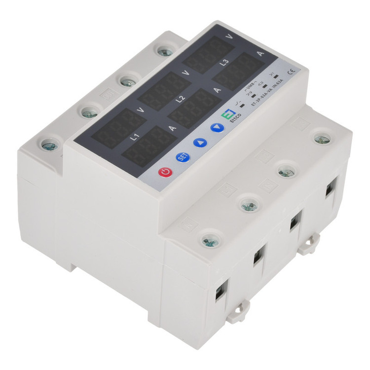 محافظ ولتاژ و جریان سه فاز 63 آمپر اتکو مدل ET-3P-63A-VA