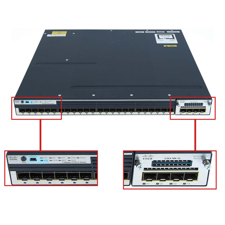 سوئیچ سیسکو WS-C3750X-24S-S محصولی از شرکت سیسکو می باشد. این سوئیچ دارای دو منبع تغذیه می باشد. ماژول سرویس جدید سیسکو دارای ویژگیهای امنیت بالا و جریان شبکه انعطاف پذیر بر روی پورت های uplink میباشد. ماژول های استفاده شده در این سری از سوئیچهای شبکه دارای امنیت و انعطاف پذیری بالایی میباشند که این سوئیچ را می توان با ماژول SFP یا +SFP در سرعتهای 1G یا 10G استفاده کرد.